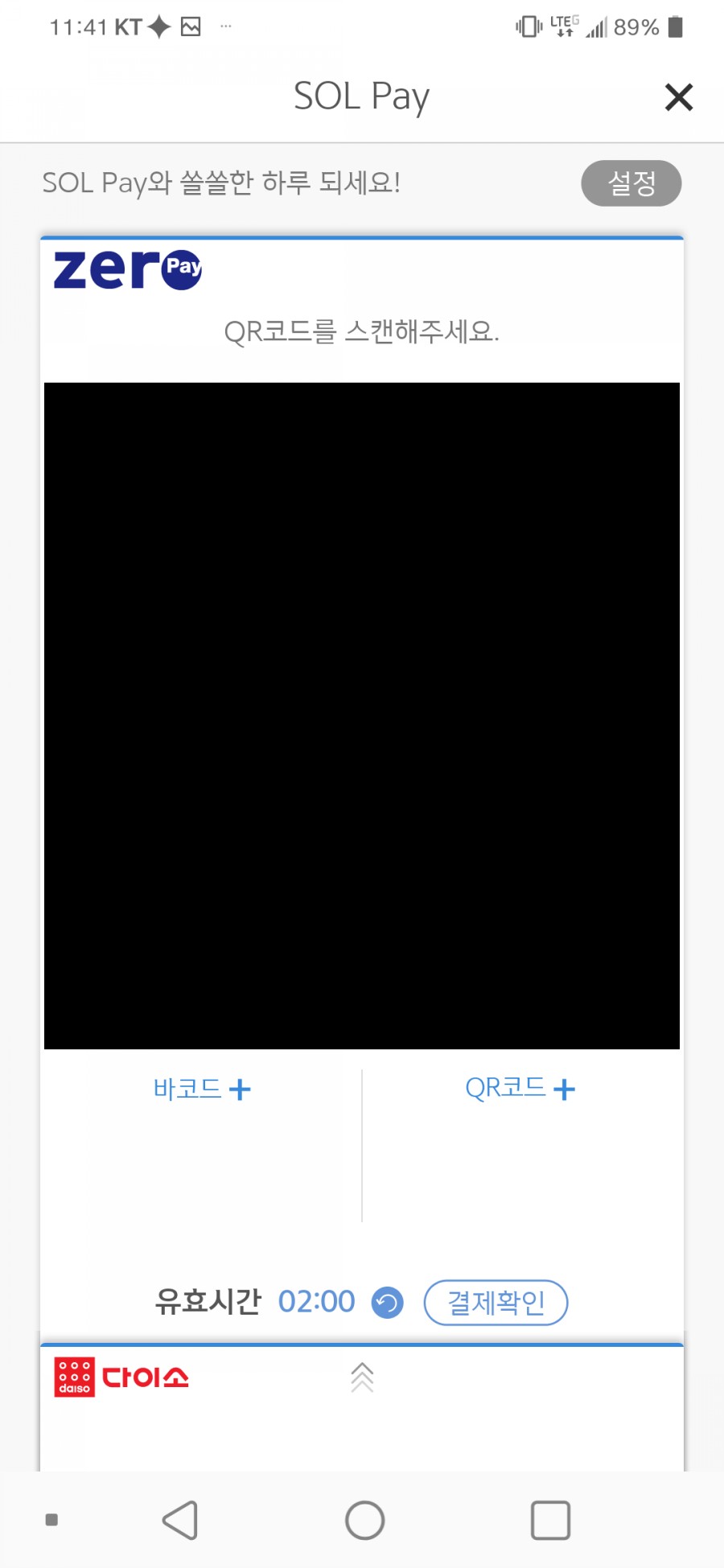 제가 쓴 건 신한은행 쏠페이에서 제로페이를 결제를 하였습니다.